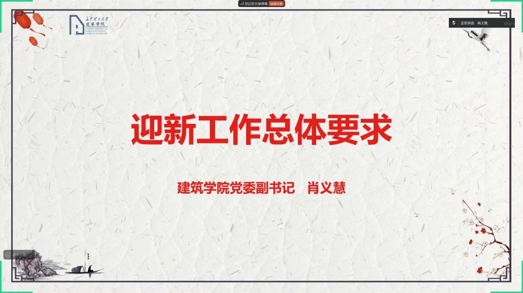 此次的建筑学院迎新志愿者线上会议,通过系统化的岗前培训,全体志愿者都掌握了迎新流程的关键环节和注意事项。建筑学院将以此为契机,持续优化各项迎新服务措施,保障每一位新生均能顺利办理入学手续,助力新生迅速适应大学生活,有序开启精彩纷呈的校园生活。