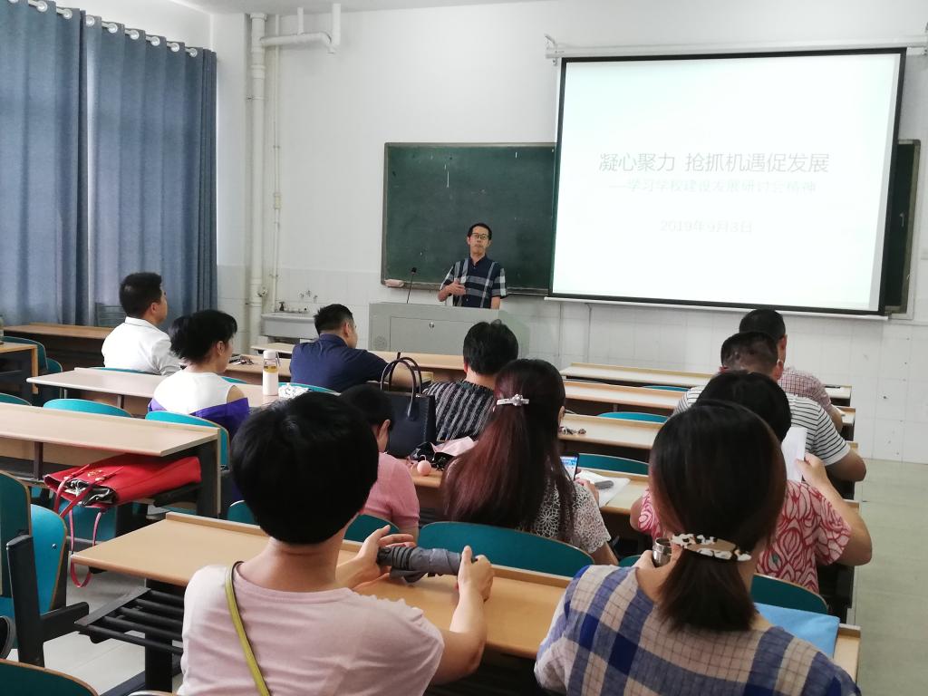 2019年9月3日下午,建筑学院召开全体教职员工大会,传达学习学校2019年建设发展研讨会的主要精神。学院党委书记丁力主持会议,并就研讨会的基本情况和主要精神进行了传达学习。