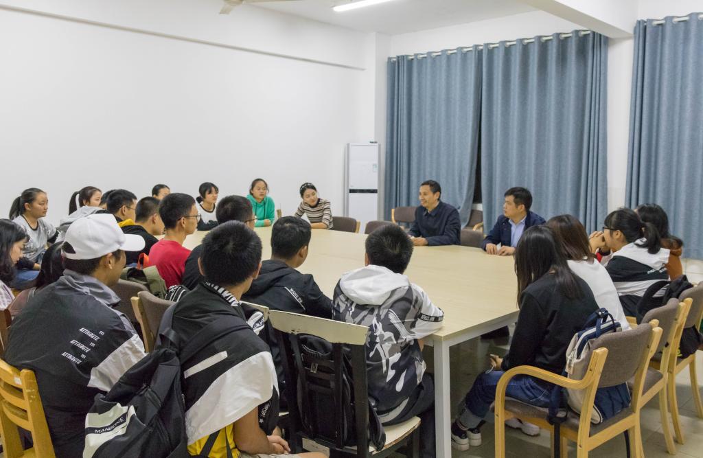 为加强领导干部与学生之间的联系,增强学生“不忘初心、牢记使命”的意识,10月20日晚7点,我院在16教积极展开处级以上干部到联系班级进行导学新思想主题教育班会。本次班会邀请开云kaiyun体育副校长杨伟军、审计处处长谈香如、监察处处长胡秀英、后勤服务集团副总经理柳翼等相关领导出席,在我院党委副书记谢士成、学工办主任周芳以及各班班主任老师的共同参与下,顺利进行了此次导学新思想主题班会。