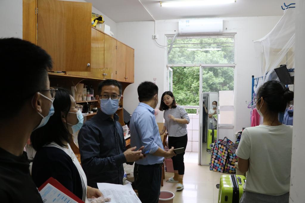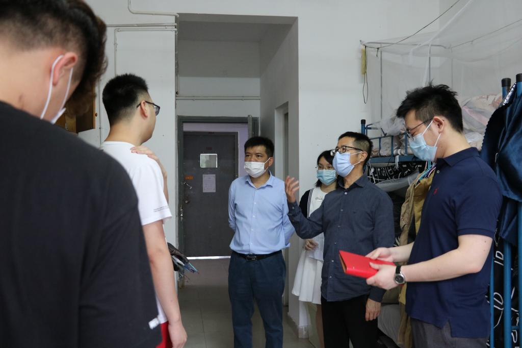 5月21日是开云官网毕业生和部分研究生集中返校的第二天,疫情发生以来,建筑学院党委领导班子和老师一直心系学生,下午17:30分,建筑学院党委书记丁力、党委副书记谢士成以及学工办全体老师深入学生公寓,走访看望我院2015级返校毕业生。