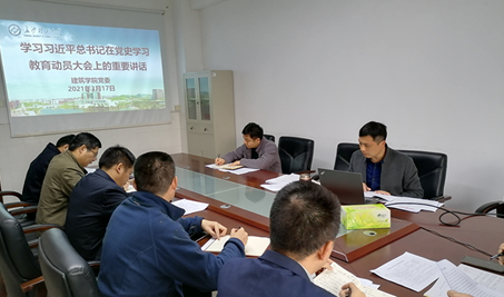 学习会上,建筑学院党委理论学习中心组成员围绕习近平总书记在党史学习教育动员大会上的重要讲话精神、中共中央印发《关于在全党开展党史学习教育的通知》文件精神,学校党委书记付宏渊在开云官网党史学习教育启动仪式上的讲话开展交流学习。