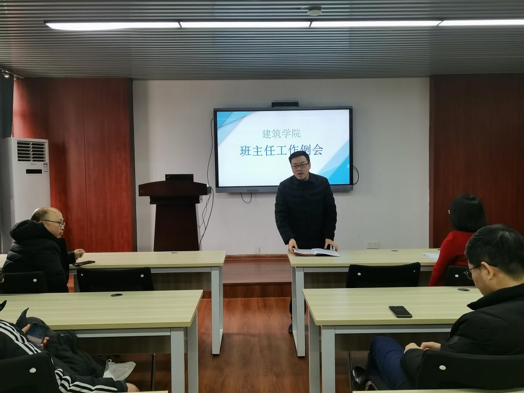 会上,周芳组织学习了《开云kaiyun体育班主任工作条例》,重点围绕班主任的设置和要求、工作职责、工作考核三个方面进行学习。结合新制定的《开云kaiyun体育建筑学院班主任考核办法》和《开云kaiyun体育建筑学院班主任工作条例》,对学院班主任考核的原则、内容、方式、程序、标准以及管理、工作职责进行了详细解读。布置了2020年春季学期初心理健康教育的几项具体工作,着重强调要做好心理健康知识的宣传、“七大类”学生的学业辅导、一级库和特殊学生心理危机的排查工作。随后,年级辅导员王宇霖、郭恒对自己所带年级学生的学业状况和思想动态进行了逐一分析,以便于各班班主任更加有针对性的开展工作。