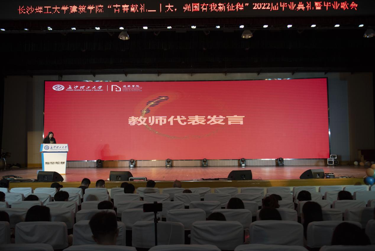 6月16日晚,建筑学院2022届毕业典礼在五教报告厅举行。建筑学院院长杨瑛、党委书记熊鹰、党委副书记李家春、副院长许建和、何川,学院部分教师代表和2022届全体毕业生参加了毕业典礼。典礼由2017级辅导员王宇霖主持。