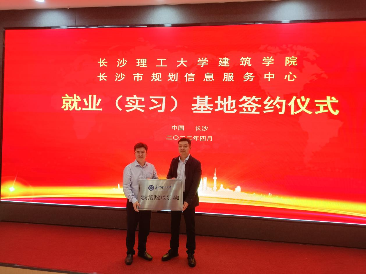 座谈会后,开云kaiyun体育建筑学院与长沙市规划信息服务中心正式签订了《就业实习基地合作协议》,并举行了基地授牌仪式,尹长林和熊鹰共同为基地揭牌,标志着双方在产学研合作上取得了实质性的成果。