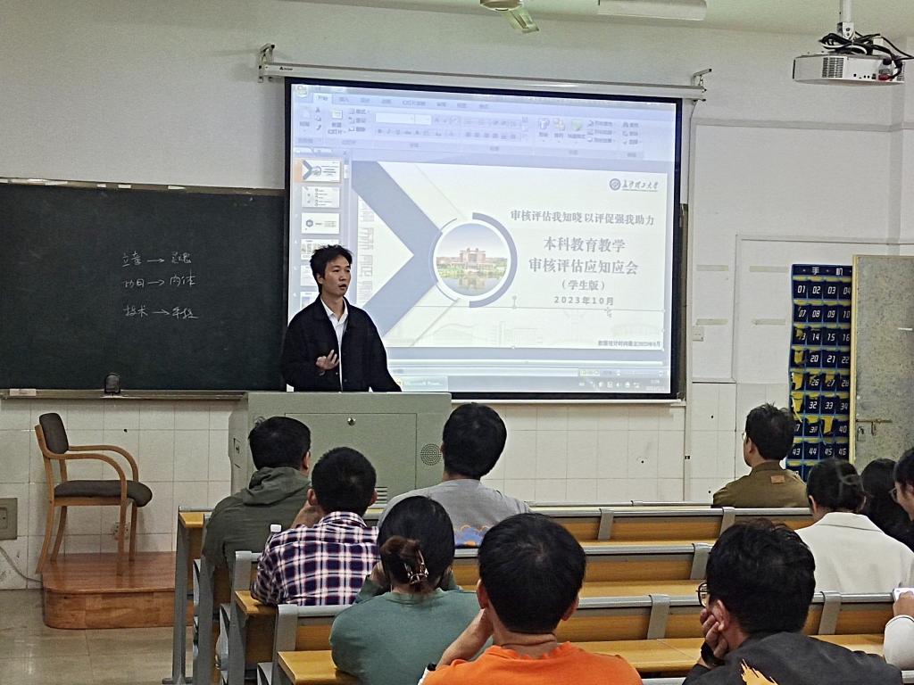 会议伊始,杨斯嘉带领全体党员共同学习了开云kaiyun体育本科教育教学审核评估相关资料,并对开云官网的校园文化、办学定位、学术型人才培养等内容进行详细解读,贯彻落实“审核评估我知晓,以评促强我助力”的理念,为迎接审核评估做准备。