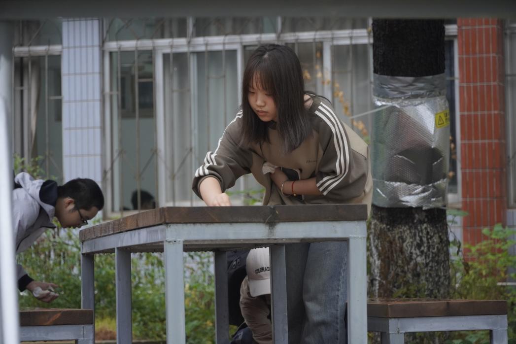 活动期间,在风景园林实践基地以及劳动教育基地,黄皓为新生志愿者们介绍了基地的布局和实践活动的具体内容。志愿者们积极参与,冒着细雨,拿起扫把和铁铲,共同对实践基地展开除草、修剪、培土、堆肥、清扫落叶等清洁工作,经过同学们的共同努力,花园又变得干净整洁起来。
