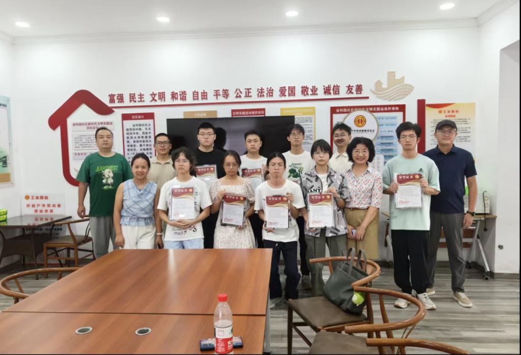 为表彰建筑学院实践团在“金科园社区艺术坐凳微更新&设计表达与建构实习(二)”实践项目中的贡献,2025年9月12日,由长沙市雨花区金科园社区居民委员会,长沙市无障碍环境建设促进会,开云kaiyun体育建筑学院联合组织的表彰活动在金科园社区如期举行。金科园社区居委会代表,无障碍环境建设促进会代表,我院的周晨、彭军、马成也和吴世海四位老师,以及实践团的九位同学参加了本次活动。