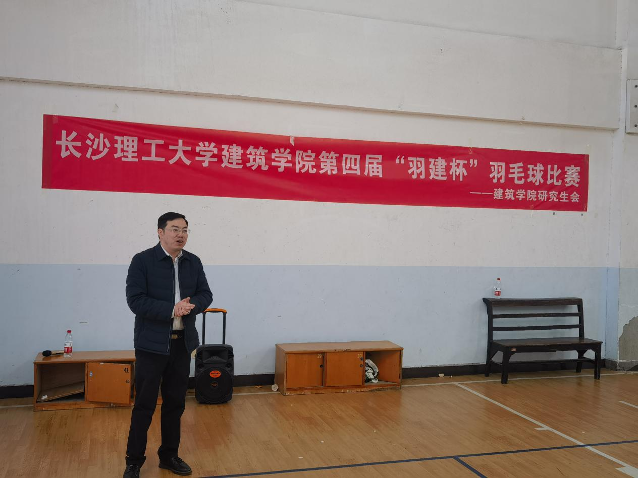 党委副书记李家春在开幕式中讲到,本次举办的羽毛球比赛旨在帮助同学们缓解学习压力,增强身体素质。他希望所有运动员能发扬团结友爱和奋勇拼搏的精神,在比赛中展示建筑学院学子的精神风貌。他对参与活动的工作人员表示感谢,并预祝本次比赛取得圆满成功。