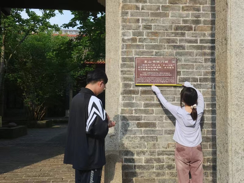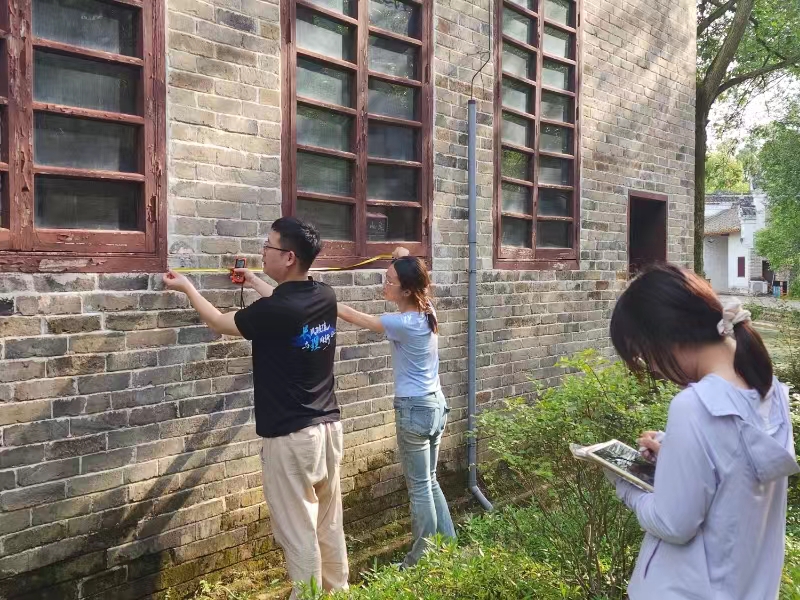 实践团队在东山书院开展实地测绘并讲好红色故事。本次实践通过无人机技术对书院建筑的外观立面进行了摄影测量,以捕捉其独特的建筑特色;接着,团队成员在建筑内部,采用手工测量方法,详细记录空间平面布局及建筑细节,确保每一处结构都得到准确呈现。这一系列工作不仅提高了测绘的效率和精度,而且为东山书院的历史研究与保护提供了重要资料。在对东山书院进行数字化测量采集信息之后,实践团成员们继续他们的红色故事宣讲视频录制工作。
