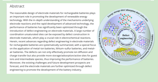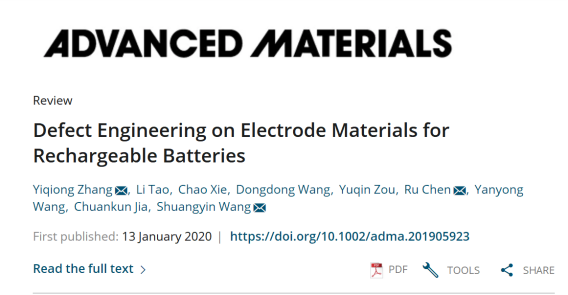 近日,开云官网材料科学与工程学院张怡琼博士与湖南大学王双印教授一起合作,以第一作者与通讯作者在材料科学国际顶级期刊Advanced Materials(《先进材料》,IF=25.809)上发表题为“Defect Engineering on Electrode Materials for Rechargeable Batteries”的综述论文。