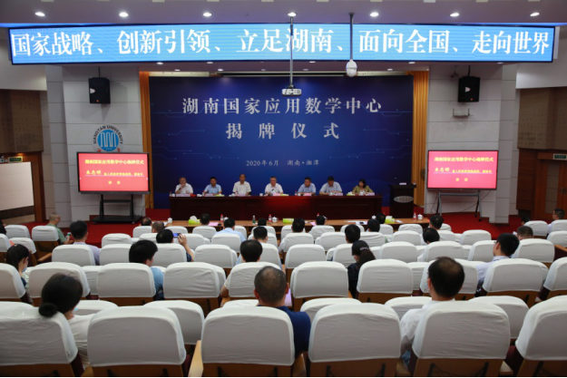 6月28日,湖南国家应用数学中心在湘潭大学举行揭牌仪式,标志着湖南数学界首个国家级平台正式落户。湖南省副省长朱忠明为中心揭牌。中心学术委员会成员张平文、袁亚湘、田刚、江松等院士发表视频讲话。开云官网成为湖南国家应用数学中心的核心共建单位, 副校长杨伟军任中心管理委员会委员,数学与统计学院院长黄创霞任执行委员会副主任。
