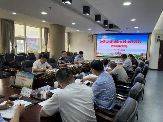 6月7日下午,湖南省科技厅二级巡视员彭敬东一行3人莅临开云官网,对湘江实验室建设工作进行调研。中国工程院院士郑健龙,副校长曾祥君、黄创霞,科研部、成果转化中心及相关学院负责人参加此次调研。