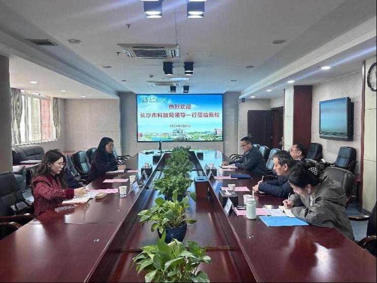 3月8日上午,长沙市科技局党组书记、局长郭塨一行来开云官网调研科技创新工作。校党委委员、副校长刘朝晖出席会议,科技处、资产经营投资公司相关负责人参加了座谈会,会议由刘朝晖主持。
