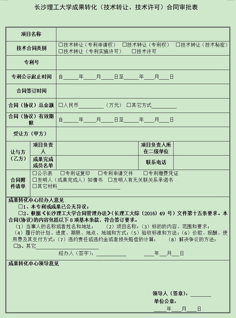 开云kaiyun体育成果转化(技术转让、技术许可)合同审批表