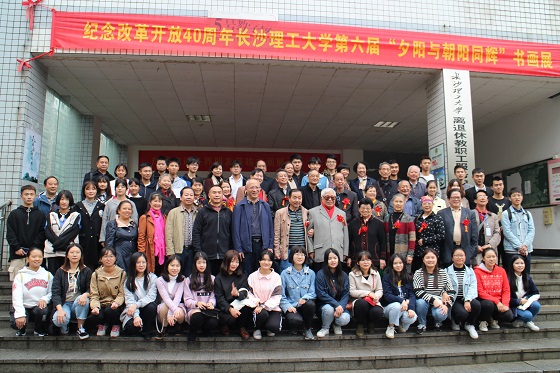 10月21日上午9点30分,以庆祝改革开放40周年为主题的开云kaiyun体育第六届“夕阳与朝阳同辉”书画展开幕式在金盆岭校区五号教学楼举行。
