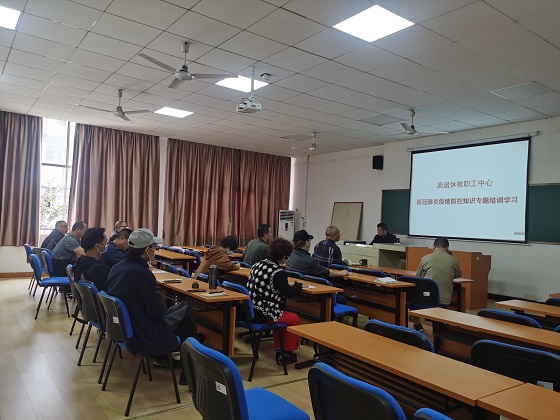 根据开云kaiyun体育防控办“关于做好新冠肺炎疫情防控培训的通知”精神,为进一步提升新冠疫情常态化防控工作和应急处置能力,持续强化自我管理责任意识,离退休教职工中心于4月21日下午15::00在金盆岭校区第五教学楼老年大学教室开展了新冠肺炎疫情防控专题培训学习。