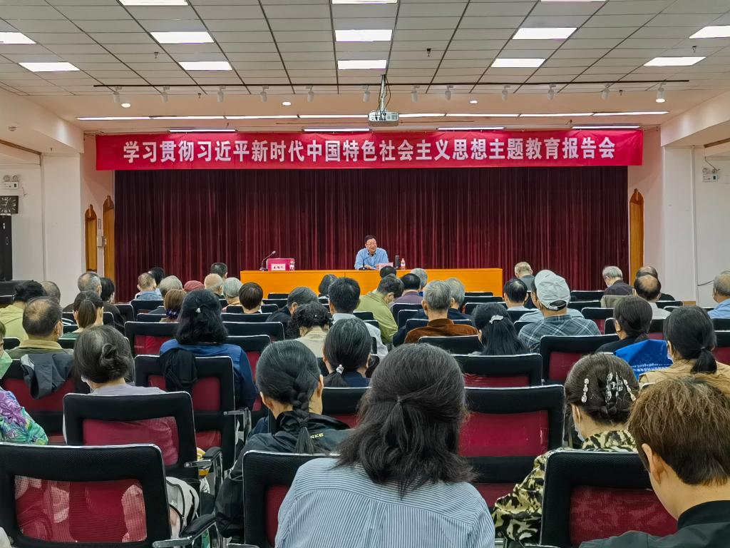 为持续深入推进学习贯彻习近平新时代中国特色社会主义思想主题教育,用党的创新理论武装头脑,5月17日上午,学校组织离退休教职工在金盆岭校区五教多功能厅召开主题教育报告会,校党委书记付宏渊作专题报告。校党委副书记刘建民出席会议。党政办、组织部、人事处等部门负责人,离休干部代表,离退休教职工党支部书记(委员),自助服务小组组长,老党员代表,关工委、老科协代表和离退休中心全体工作人员共150多人参加。报告会由离退休教职工党委书记徐亮主持。