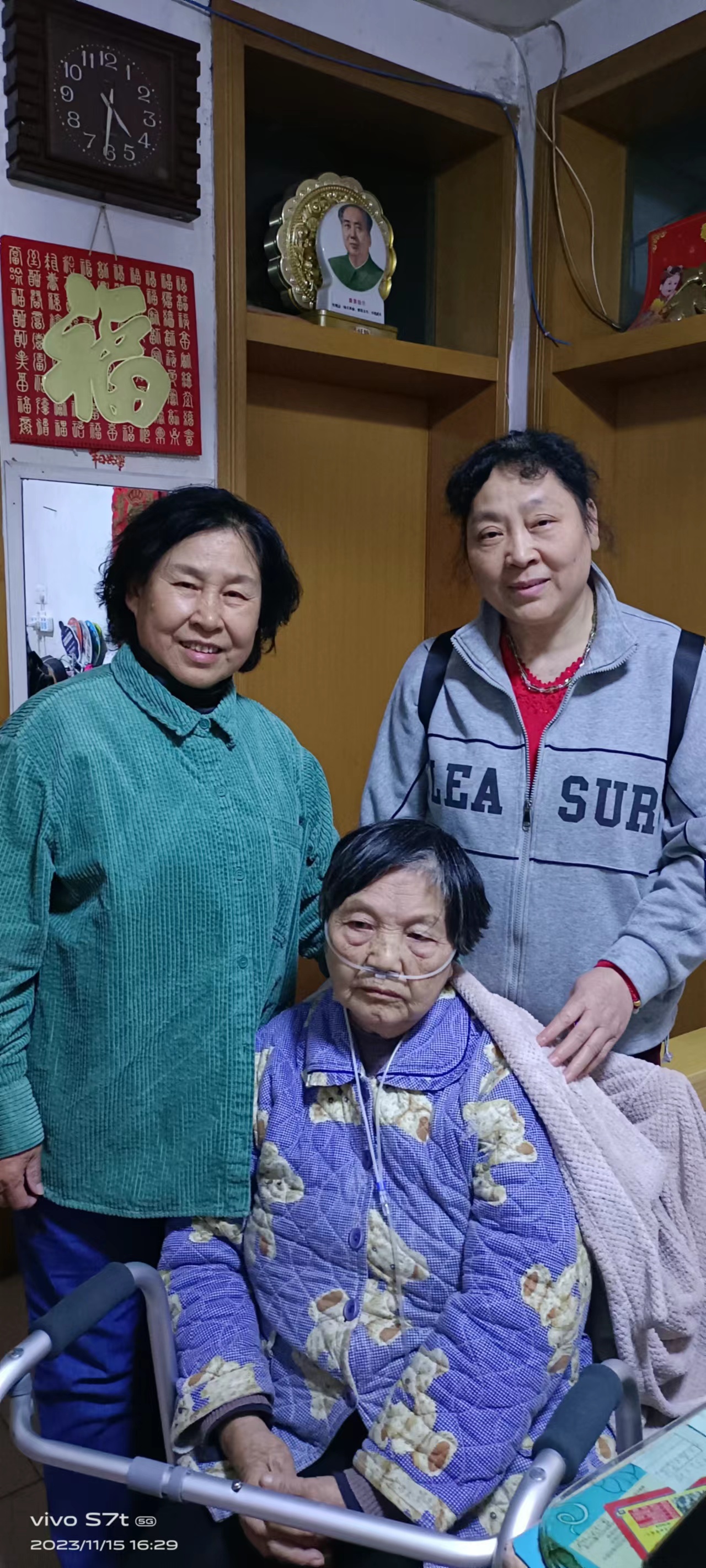 11月15日,基建后勤资产退休党支部书记兼第二十七自助小组助长黄凤英、支部委员兼自助小组副组长欧美丽赴审计厅、侯家塘校区、金盆岭校区登门看望慰问了高龄重病的吴积秀、申玉珍、张享廉三位老师,他们中年龄最小的83岁,年长的已进88了。