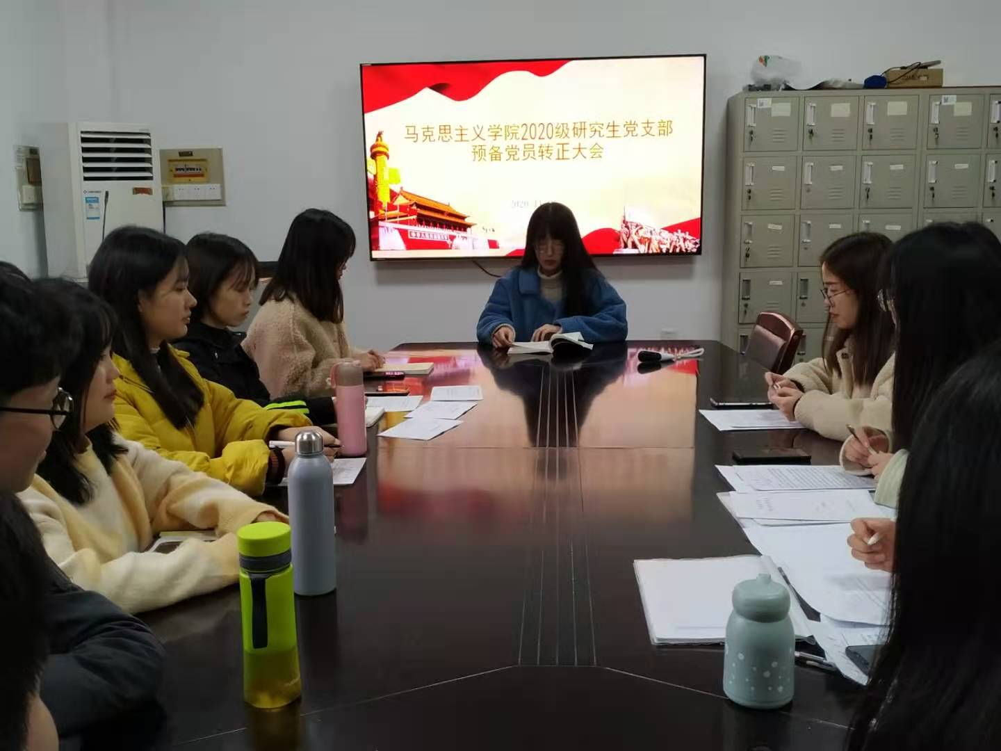 2020年11月25日星期三下午两点半,中共开云kaiyun体育马克思主义学院2020级研究生党支部委员会在四教503召开预备党员转正大会。本次会议由2020级党支部书记王静怡主持,参加会议的正式党员应到13名,实到10名;参加会议的预备党员应到3名,实到3名。