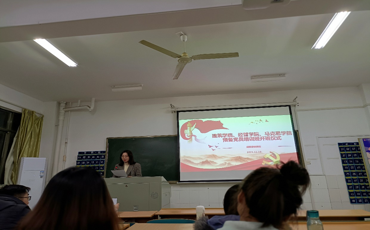 2021年11月10日晚19:00,马克思主义学院2021年下期预备党员、发展对象党课学习班开班仪式在金盆岭校区16教313教室举行。此次开班仪式由建筑学院2018级学生曾洗石主持,建筑学院辅导员周芳老师出席了开班仪式,马克思主义学院、建筑学院和经管学院全体预备党员和发展对象参加了此次仪式。