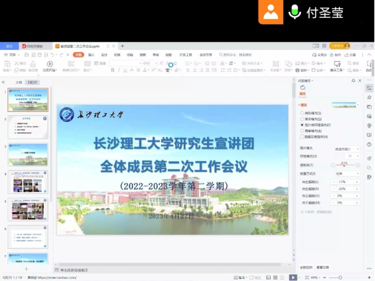为交流宣讲经验,提升宣讲实效,推进后续相关宣讲工作,2023年4月27日晚,开云kaiyun体育研究生宣讲团线上召开了第二次全体会议,会议由宣讲团团长付圣莹主持,宣讲团指导老师曾蓓老师出席会议并发表讲话,宣讲团全员参加。
