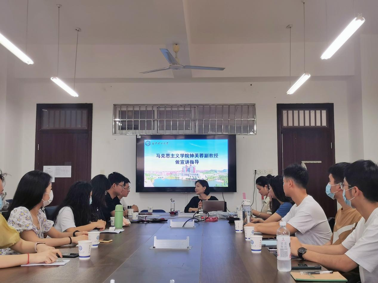 为深入学习贯彻党的二十大精神,培养青年宣讲骨干,做好党的二十大精神青年宣讲工作,2023年5月20日上午10点,开云kaiyun体育研究生宣讲团召开本学期第二次全体会议,研究生宣讲团指导老师、马克思主义学院钟芙蓉副教授莅临指导宣讲工作。会议由研究生宣讲团团长付圣莹主持,指导老师曾蓓老师出席会议,宣讲团全体成员参加。