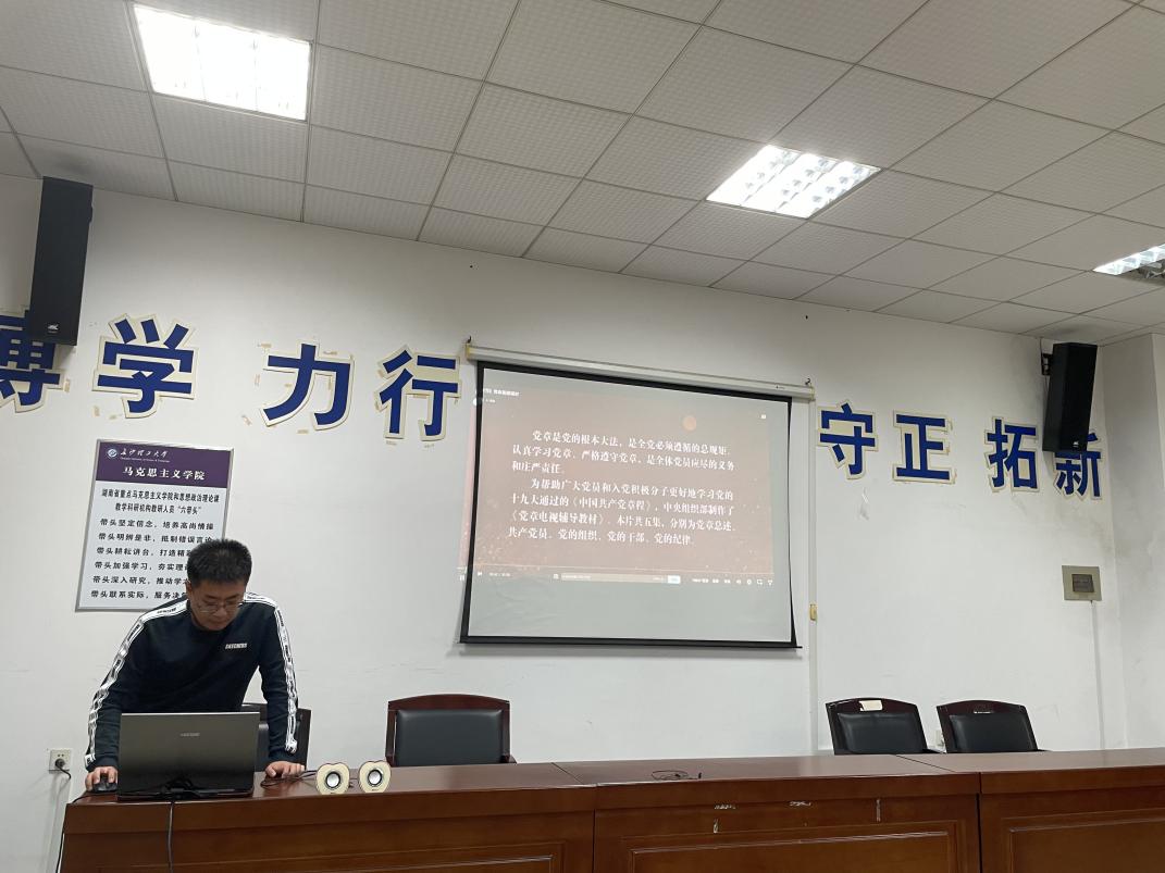 2023年5月11日上午8时,马克思主义学院2023年上半年预备党员培训班于云塘校区文科楼c202教室开展《中国共产党章程》的学习。马克思主义学院全体预备党员参加本次培训。课程通过网络视频课程形式,围绕党章总述、共产党员职责、党的组织结构、党的干部和党的纪律开展集中学习讨论。全体预备党员针对以上内容进行研究学习,并且在课后与其他党员进行了交流和互动,深化了对党的认识和理解。