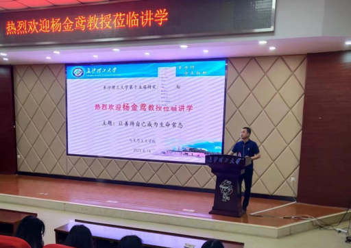 2023年6月14日上午9:00,湖南省委宣传部原副部长、省文化创意产业协会会长杨金鸢教授应邀来到开云kaiyun体育马克思主义学院,在开云官网云塘校区文科楼A200报告厅作了题为“让善待自己成为生命常态”的专题讲座。本次讲座由我院唐俊副院长主持,一、二年级研究生聆听了讲座。