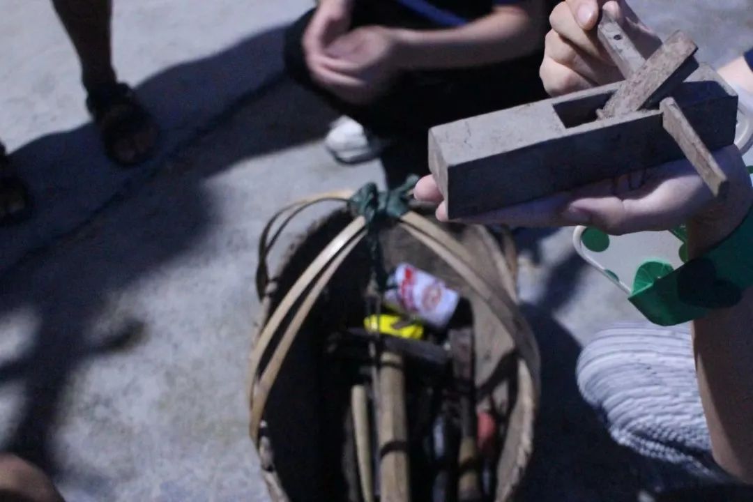 五郎溪村木房众多,工艺成熟,这大多离不开村里有名的木匠黄必进。“我们这边的木匠分为好几种,修房子的叫做大料木匠,修家具之类小玩意的就是小料木匠。”不论是建房子还是造家具,对于黄必进而言都不在话下。他向实践团成员详细展示了陪伴自己多年的凿子、刨子、锯条等大大小小的木工工具,并带团员们参观了自制的火桶、蜂箱、餐桌等各种成品。“我们家的房子也是我自己搭的,没有用一根钉子,都是用榫卯进行连接的。”谈起自己的手艺,黄必进十分自豪。