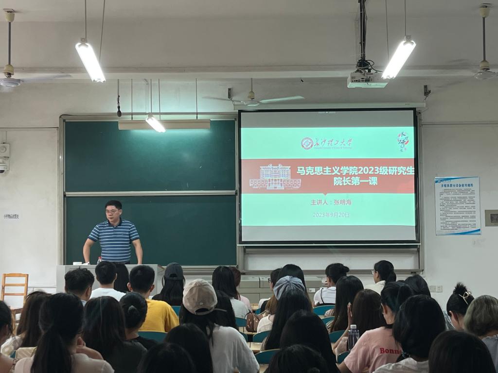 2023年9月20日上午11:00,马克思主义学院在云塘校区文科楼B303开展院长第一课。本次活动由辅导员曾蓓老师主持,院长张明海教授主讲,2023级全体研究生参加。
