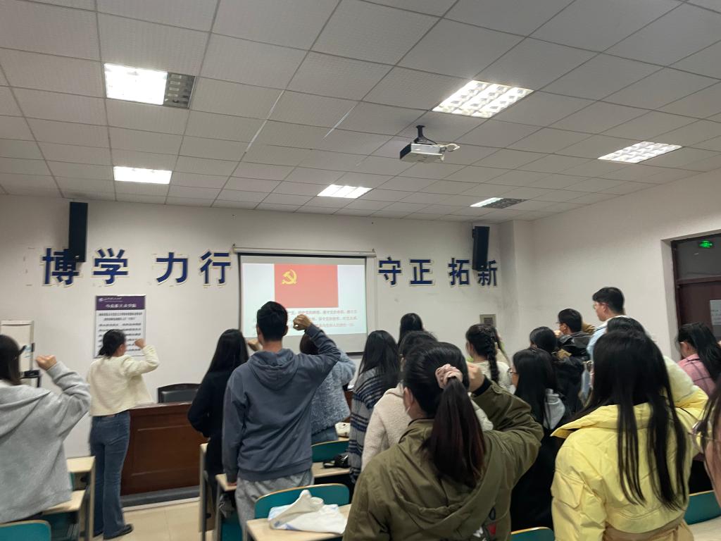 大会伊始,组织委员吴彩虹宣布应出席和实际出席支部大会的党员人数,并向大会汇报支部考察、公示等情况,公示情况无异议。随后全体起立面向党旗,奏唱国歌,本次大会严格按照预备党员接收流程进行,首先由曹子璇等13位同志宣读《入党志愿书》,汇报对党的认识、入党动机、本人履历、家庭和主要社会关系情况,以及需向党组织说明的问题。他们真诚地向党组织汇报了自身情况以及考察期一年内的思想情况、学习情况、生活情况等,并向党组织表决心,表示在今后的工作与学习中将以更加严格的标准要求自己,向先锋模范党员们看齐,发挥自身优势,努力践行为人民服务的宗旨,不断向做一名合格的共产党员的目标靠拢。随后,由他们各自的介绍人宣读对曹子璇等13位同志的教育和考察情况并表态。经支委会研究决定,在场正式党员进行讨论,以无记名投票的票决方式进行表决,曹子璇等13位同志获得的同意票数超过应到会有表决权党员的半数,支部大会通过其转为预备党员。决议结束后,由拟预备党员代表谭翰香发言,她对于党组织的决议表示了感谢,表明以后将努力提高自己的各方面素质,增强为人民服务的本领,立志从合格党员做起,向优秀党员模范看齐。紧接着支部书记阮曼担任领誓人,带领所有党员一起高举右手,庄严宣誓,铿锵誓言,心潮澎湃,初心昭昭,砥砺前行,全体宣誓成员为共产主义奋斗终身的信念更加坚定了。最后支部书记阮曼表示大家要继续加强政治学习,不断提高思想觉悟,切实做好责任担当。不仅要在组织上入党,更要真正从思想上入党,要时刻以优秀共产党员的标准要求自己。
