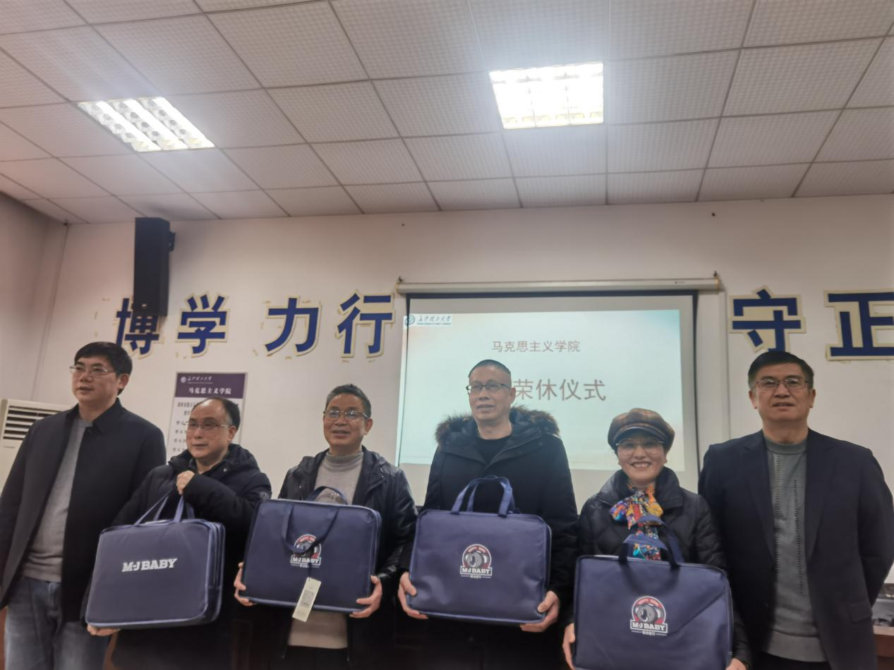首先,学院举行了热情温暖的教职工荣休仪式。陈万球书记代表学院党委和全体教职工感谢7位退休教师在思想政治理论课讲台的长期坚守、辛勤付出以及为学院建设发展作出的重要贡献,并希望退休的老师们继续关心、支持学院工作。同时,陈万球书记、张明海院长也为荣休教师赠送了学院精心准备的纪念品。