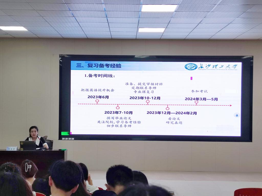 最后,辅导员曾老师对本次交流会进行了总结。她介绍了今年学院考博上岸的情况,并强调了母校申请博士点的重要性,鼓励同学们将母校作为优质选择。同时,她提醒同学们要设定初期和中期目标,注重学习基础和未来发展。她祝愿所有即将毕业的学长学姐前程似锦,并鼓励在座的同学共同努力,共同成长。