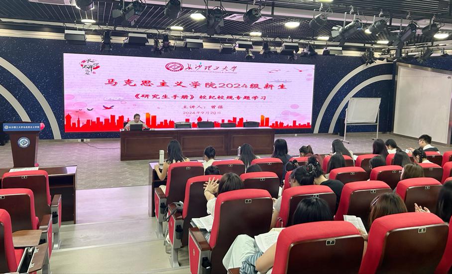 为进一步提升马克思主义学院研究生新生的规矩底线意识和自我管理能力,让新生们能够快速适应研究生生活,9月20日上午9时,马克思主义学院于云塘校区文科楼B300报告厅开展《研究生手册》校纪校规专题学习。本次学习由院学生工作办公室主任曾蓓老师主讲,2024级全体研究生参加。