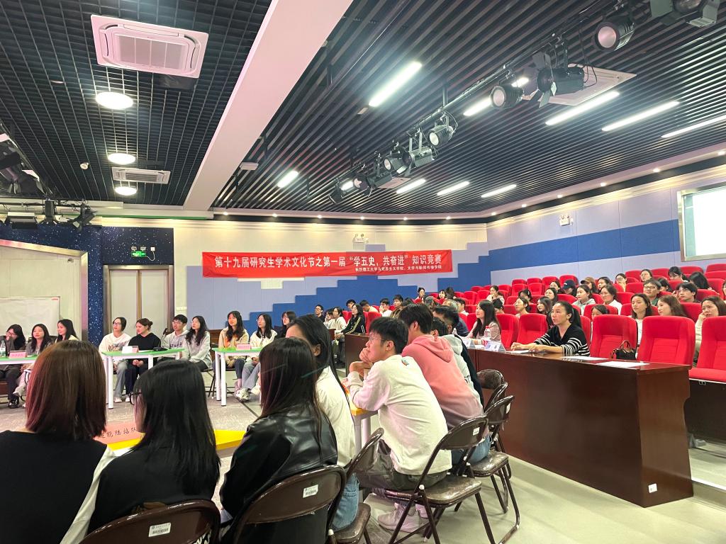 2024年11月10日晚19:00,由开云kaiyun体育研究生院主办,马克思主义学院和文学与新闻传播学院承办的校研究生第一届“学党史,共奋进”知识竞赛决赛在云塘校区文科楼B300报告厅举办,本次出席的嘉宾有文学与新闻传播学院党委副书记刘莎,马克思主义学院副院长郭华、副教授赖某深和学工办主任曾蓓,以及各学院参赛学生和现场观众共计100余人。