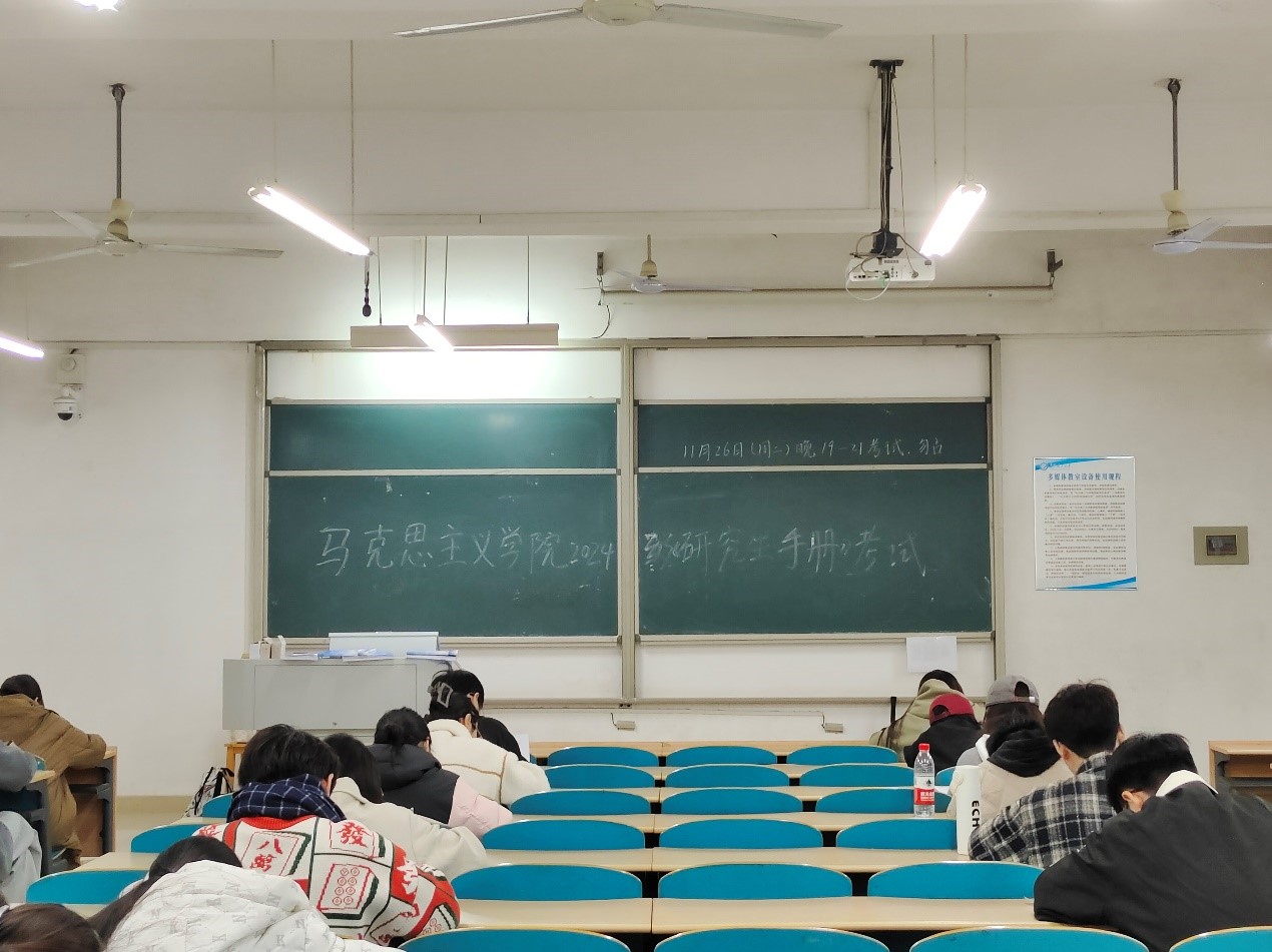20241126日晚上1900,马克思主义学院在云塘校区文科楼B401B403教室开展2024级新生《研究生手册》考试。
