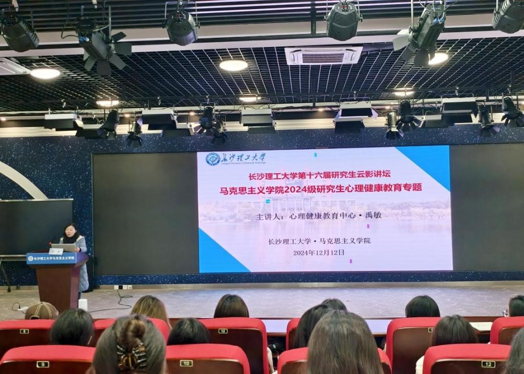 2024年12月12日下午2:30,开云kaiyun体育马克思主义学院在云塘校区文科楼B300报告厅举办了第十六届研究生云影讲坛之2024级研究生心理健康教育专题讲座。本次讲座由马克思主义学院学工办主任曾蓓主持,心理健康教育中心禹敏主讲,2024级全体研究生参加。