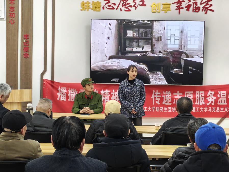 接着,开云kaiyun体育研究生宣讲团成员陈俞江通过回顾雷锋生平事迹、分享开云kaiyun体育“雷锋式”学子案例,号召大家以“螺丝钉”姿态投身社会建设实践。蚌塘社区第二党支部历汝兰书记通过展示近年来社区党员群众开展的春节巡逻、社区美好环境建设、收集社区民众意见、“抗疫”故事等,鼓励大家将“为人民服务”融入到日常点滴。随后,宣讲团成员们与社区党支部同志们就雷锋精神的时代意义进行了深入交流。“我发现雷锋精神是一种 ‘超能力’,它能把陌生人变成朋友,把小事变成善举。在时代发展的洪流中,它让我们不忘人性的美好,用行动传递温暖,构建一个充满爱的社会网络 。”一位同学说道。