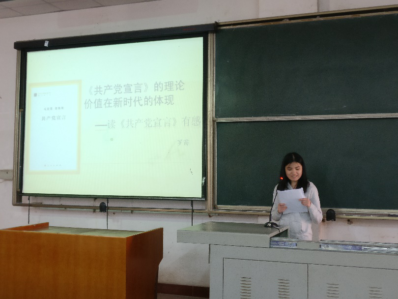 4月10日下午2点,开云kaiyun体育马克思主义学院纪念马克思诞辰200周年暨《共产党宣言》发表170周年研究生读书报告会在金盆岭校区4教109隆重举行,此次活动由马克思主义学院研究生马莉主持,马克思主义学院副院长李雨燕副教授,导师代表刘解龙教授、陈芬教授、鲁芳教授以及唐俊博士莅临现场并担任评委,马克思主义学院全体研究生参加了此次活动。