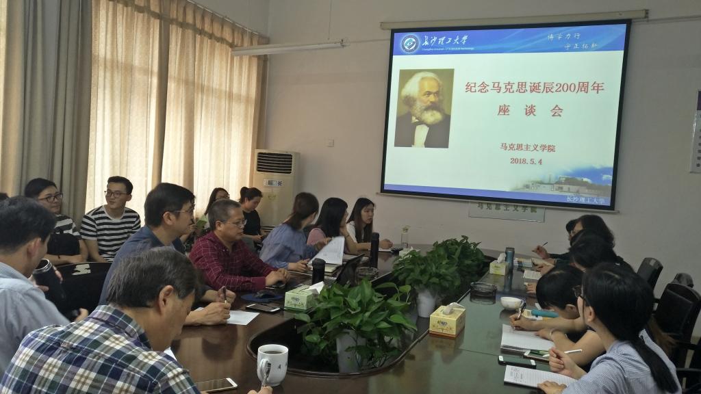 5月4日上午9:00,马克思主义学院在云塘文科楼B-602学院行政会议室举行纪念马克思诞辰200周年座谈会,座谈会由院领导、系主任、支部书记、教授委员会委员、教师代表、学生代表共计二十余人参加,座谈会由陈万球院长主持。