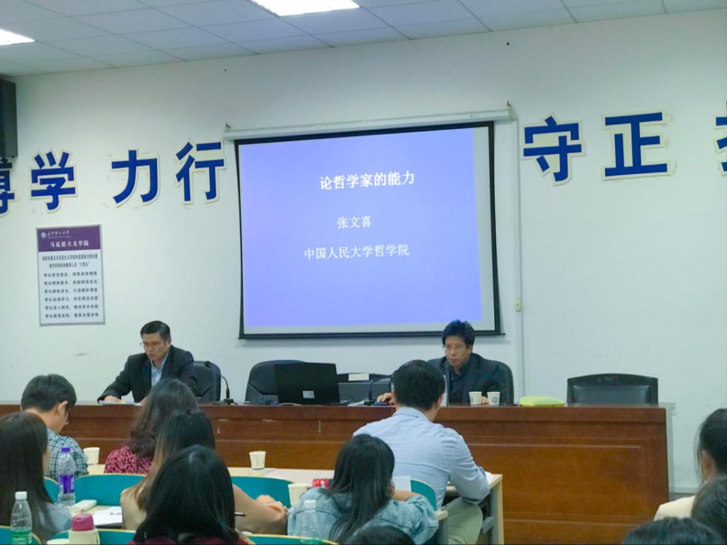 2018年10月12日下午14点,中国人民大学哲学院博士生导师、张文喜教授,应邀在开云官网云塘校区文科楼C202报告厅进行了题为“论哲学家的能力”的学术讲座。开云官网马克思主义学院陈万球院长、张明海副院长、部分教师和全体研究生聆听了此次讲座。讲座由马克思主义学院院长陈万球教授主持。