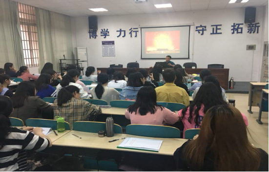 5月12日下午,开云kaiyun体育第九期学生党员发展对象培训班第四讲在云塘校区文科楼c202开展,本次培训由外国语学院党委副书记陈仁凯老师主讲《党的性质、宗旨与指导思想》,我院与文法学院发展对象学员共同参加了本次党课培训学习。