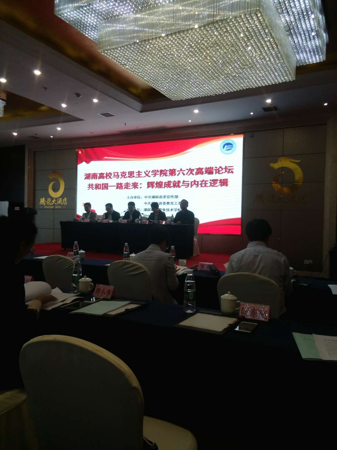 由省委宣传部、省委教育工委举办的全省高校马克思主义学院第六届高端论坛于5月17日上午在湖南铁道职业技术学院举行。省委宣传部理论处处长殷晓元、省教育工委宣传部调研员陈解、省马克思主义理论研究会秘书长杨畅、株洲市委宣传部副部长许志汉、湖南铁道职院党委书记姚和芳和全省重点马院和思想政治理论教育机构的负责人及其教师代表以及全省高校马院代表一百多人出席了大会。我院陈万球院长和余乃忠教授参加了大会。