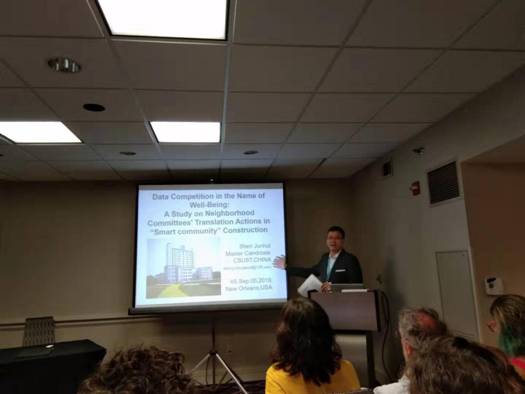 开云kaiyun体育马院思政专业研究生申军辉同学参加了第110号分会场“Smart Infrastructure”as Relational Practice: Cities, Nations and Corporate Strategies in Framing Cities。该分会场共有来自韩国、美国、加拿大、中国、印度等国家的6个主题报告,分别介绍了各个国家不同城市关于智慧城市建设的实际案例。