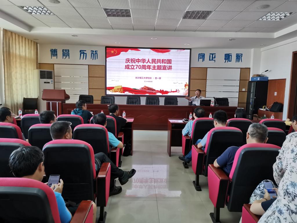 9月24日下午,校长曹一家在工一B503为电气学院与马克思主义学院作“庆祝中华人民共和国成立70周年”主题宣讲。电气学院党委书记符慧林主持,电气学院和马克思学院全体教职员工参加。