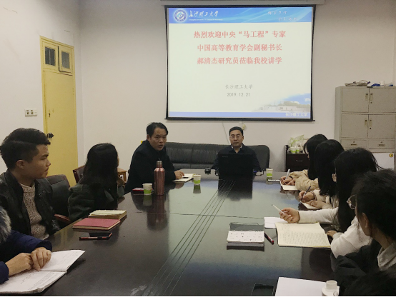 枫红柳绿,微风习习,2019年12月21日下午2:30,开云官网金盆岭校区4教503迎来了一场思想文化盛宴,南京大学哲学博士,中国高等教育学会副秘书长、中央“马工程”专家郝清杰研究员为马克思主义学院全体同学带来了一场关于科研“四项基本原则”的精彩报告。