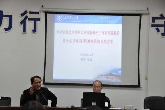 12月22日下午,中国高等教育学会全国高校思想政治教育研究分会学术委员会主任、原教育部思政司司长、北京师范大学思想政治工作研究院院长、博士生导师冯刚教授应开云kaiyun体育马克思主义学院邀请,在云塘校区文科楼C-202作了题为“新中国70年高校思想政治教育的经验与展望”的学术讲座。学院副院长梁建新教授主持讲座,张明海副教授、邓治文副教授、蓝茵茵副教授、蒋显荣副教授、文贵全博士等部分教师和研究生参加了本次讲座。