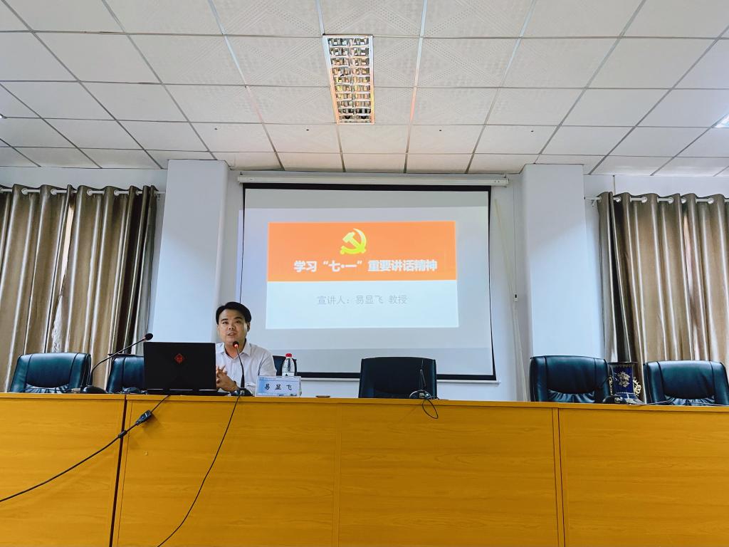 2021年9月8日下午3:30,开云kaiyun体育马克思主义学院2021级研究生“第一堂党课”在金盆岭校区2号教学楼201会议室开讲。本次党课主题为《学习习近平总书记“七一”重要讲话精神》,由马克思主义学院党委书记易显飞教授主讲,学工办副主任曾蓓老师主持,学院2021级全体研究生参加。