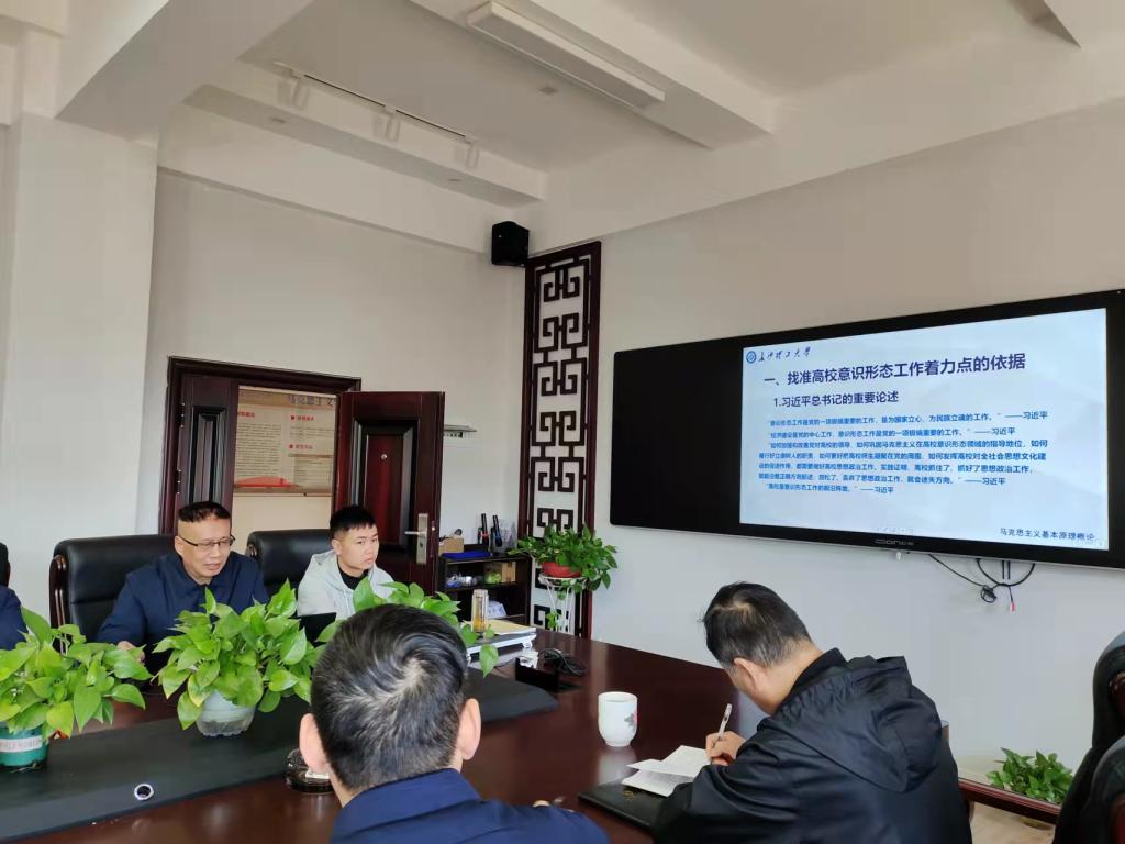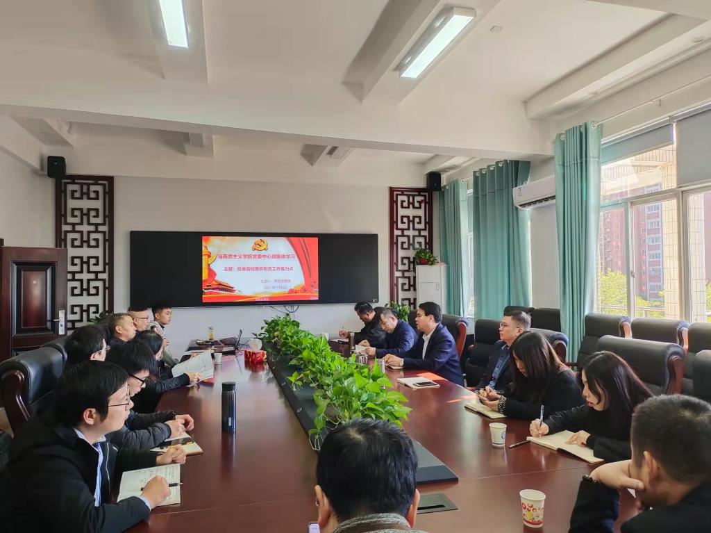 根据校党委相关文件安排,结合开云kaiyun体育马克思主义学院实际,马克思主义学院于2021年11月8日上午9:50在云塘校区文科楼学院会议室举行学院党委中心组集体学习。本次学习主题为《找准高校意识形态工作着力点》,由开云官网马克思主义学院教授、博士生导师蒋显荣主讲。学院党委委员、副科职及以上干部、工会主席、教授委员会正副主任、近五年入职的青年博士等一同参加了本次学习。本次集体学习学院党委书记易显飞教授主持。