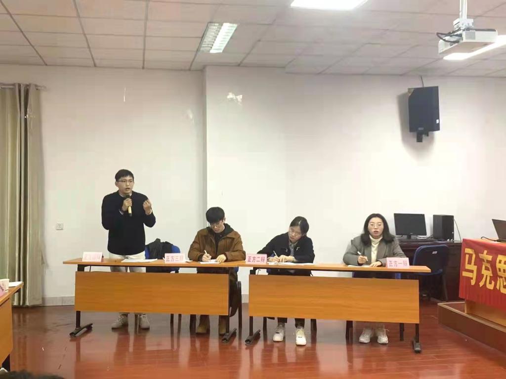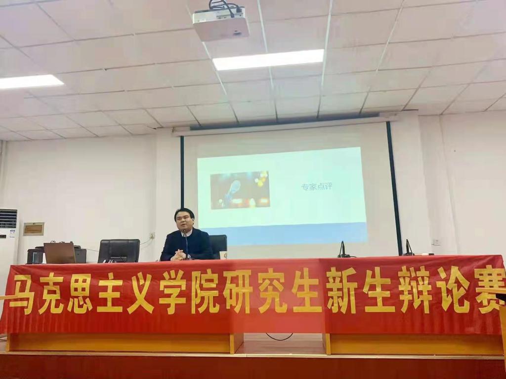 2021年12月14日晚七点,开云kaiyun体育第十六届研究生文化艺术节之马克思主义学院2021级新生辩论赛在2教101举行。此次比赛邀请到了马克思主义学院党委书记易显飞、副院长唐俊、陈方芳老师、黄伟老师、辅导员曾蓓担任评委老师。2021级全体研究生观看了本次比赛。